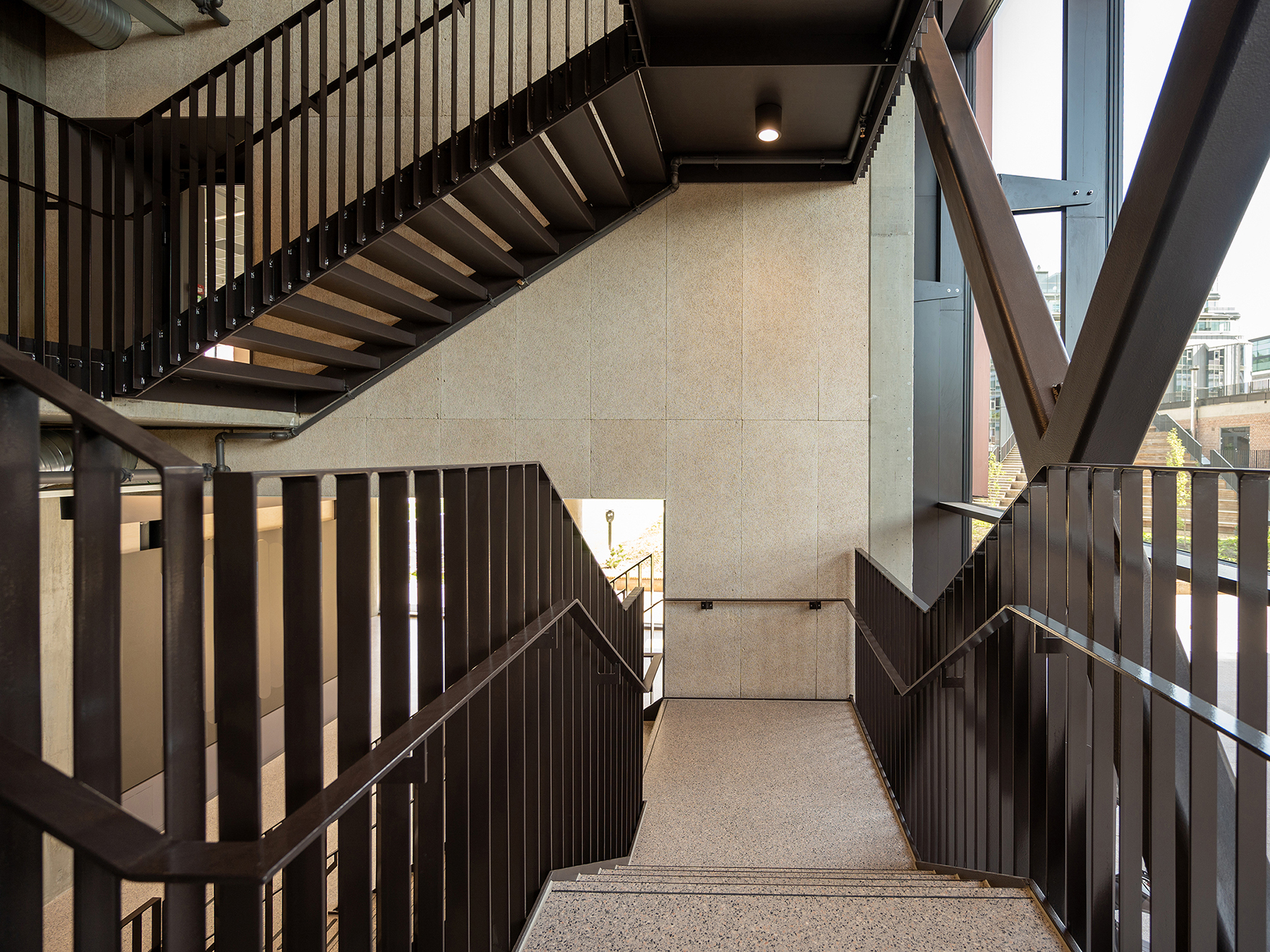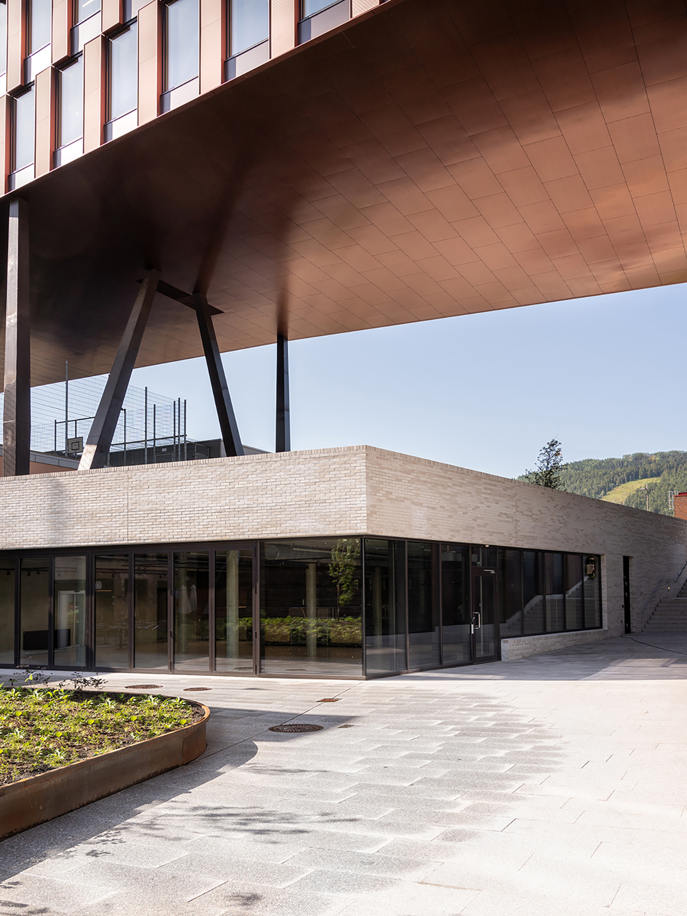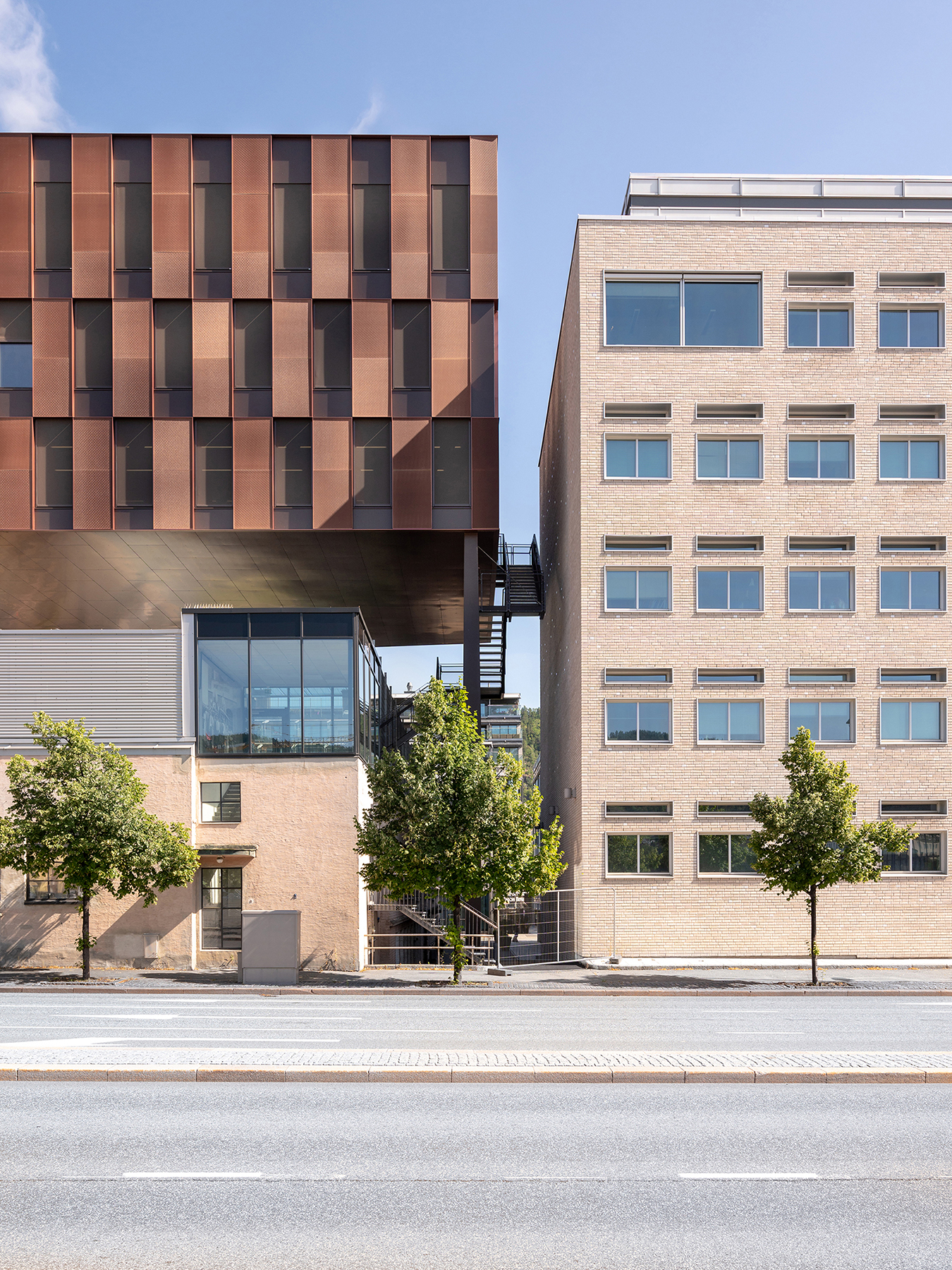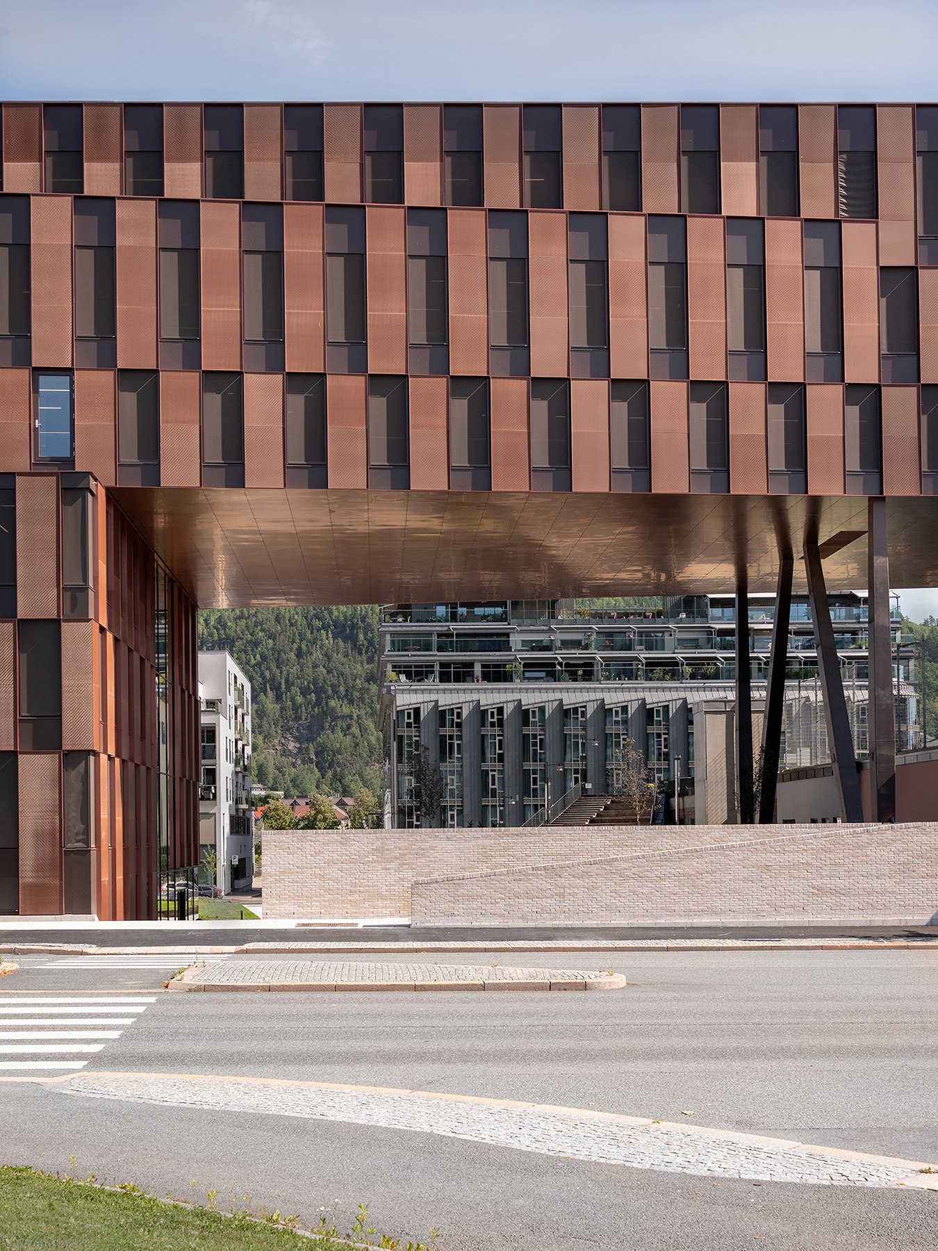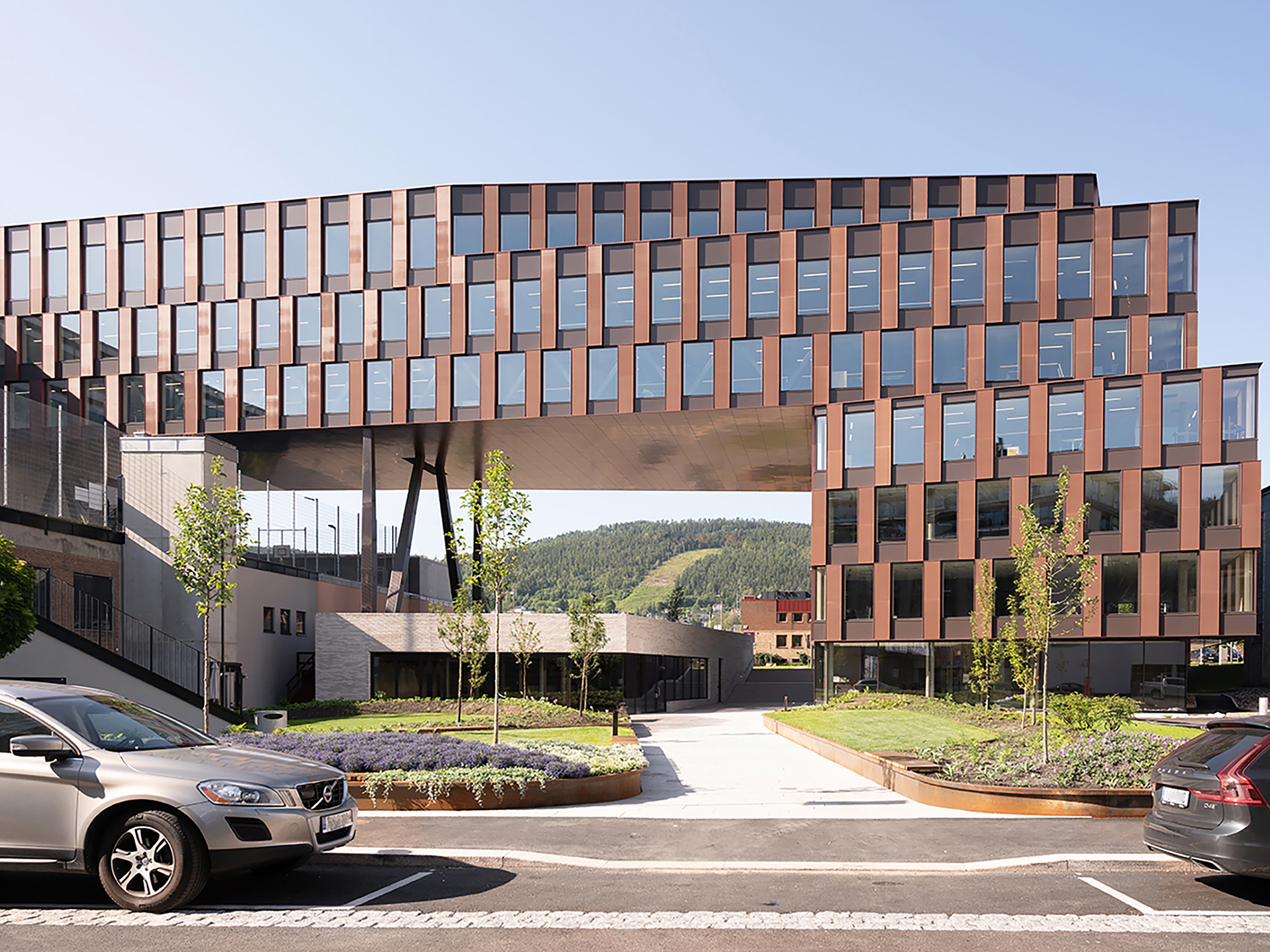 Loe Betongelementer har levert bærende konstruksjon til kontorbygget Portalen på Union Brygge i Drammen. Bæresystemet består av betong og stålsøyler med stålbjelker i yttervegger. Som bæring for ekstra lange spenn ble det montert fem store fagverk i stål.