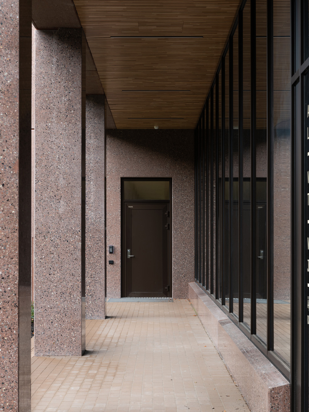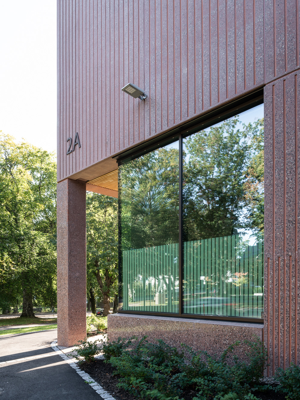 Den karakteristiske rødtonen som preger fasadeelementene er utviklet i tett samarbeid med kunde, byggherre og Add arkitekter og er ment å gjenspeile den lokale bergarten Tønsbergitt, samt teglstein som er benyttet på omkringliggende bygninger. Den røde betongen er tilsatt Svelvik-stein og deretter brushet slik at overflaten fremhever den flerfargede kortreiste steinen som del av uttrykket.