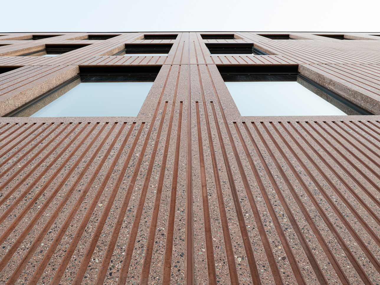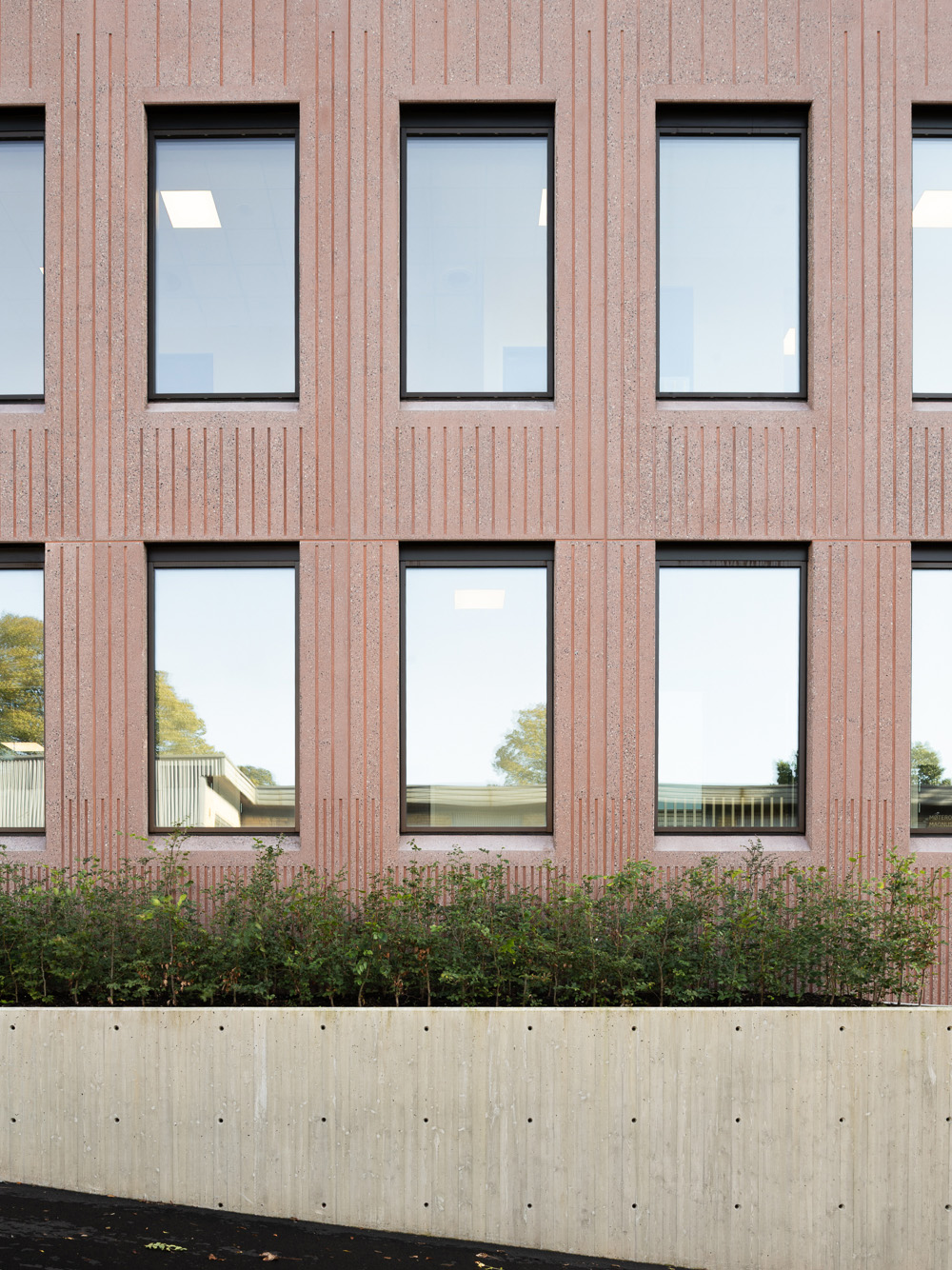 Loe Betongelementer har vært totalleverandør av komplett bæresystem, inkludert bærende isolerte fasadeelementer utformet med matrisemønster og spesialutviklet farge.
